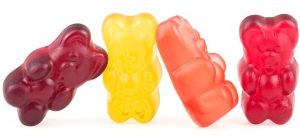 Group of colorful sweet jelly marmalade bears isolated on a white background. Fruit gummy candies.