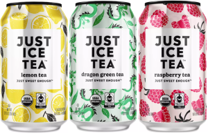 JUST IEC TEA ORGANIC LEMON, GREEN DRAGON OR RASPBERRY ICE TEA